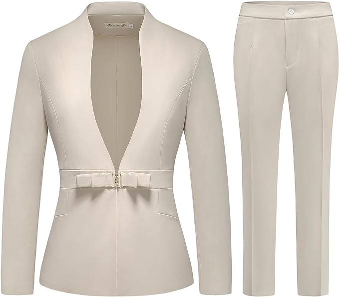 Women's Business Pant Suit Set 2 Piece Slim Fit Blazer Jacket One Button Buckle Closure Lady Work Suit for Office