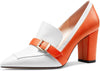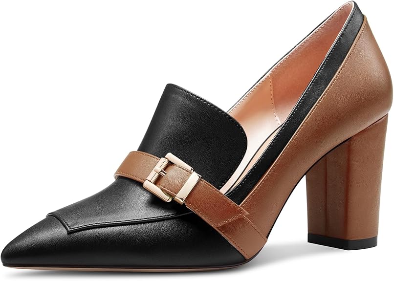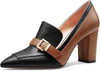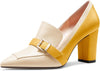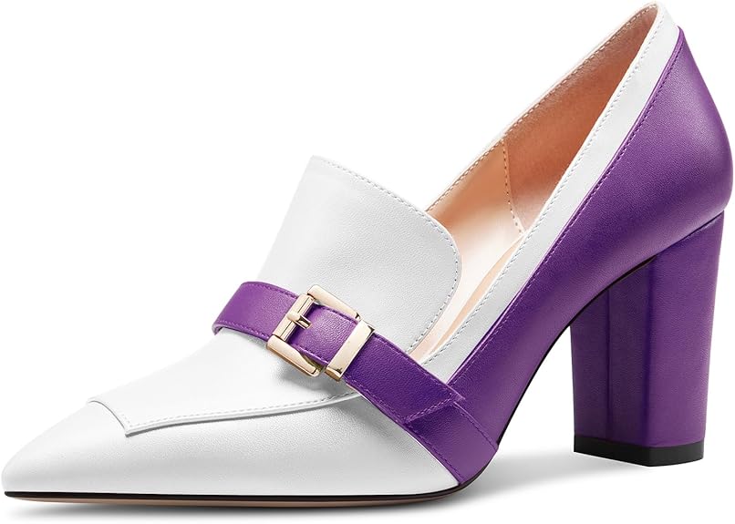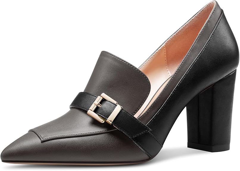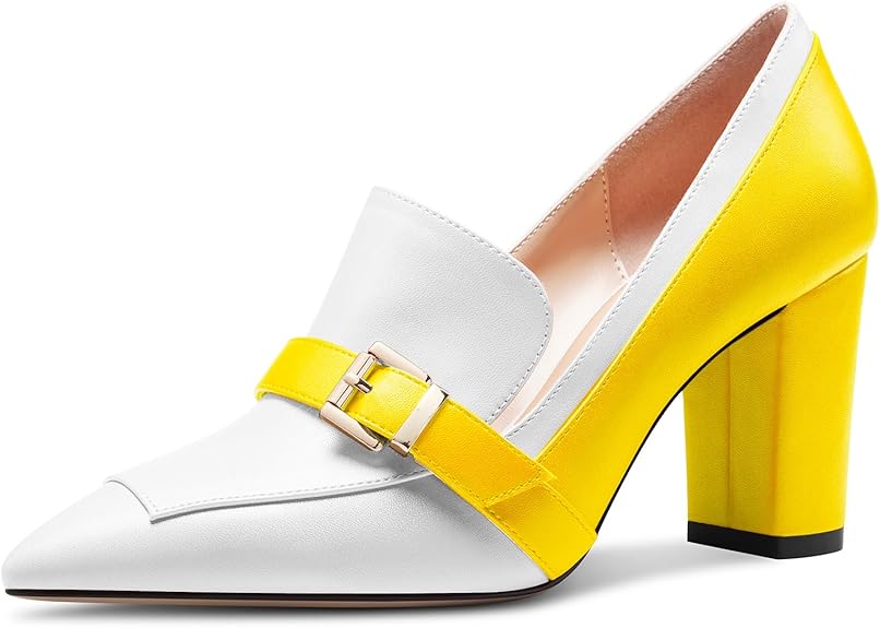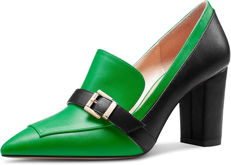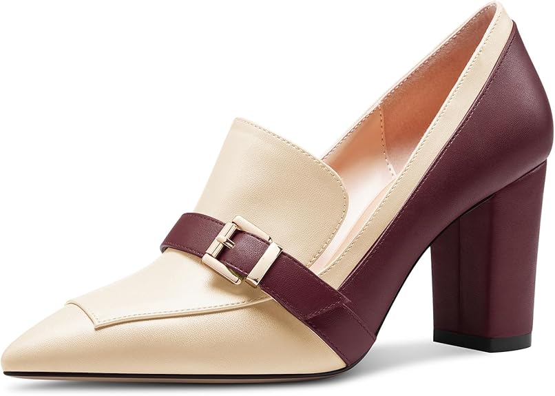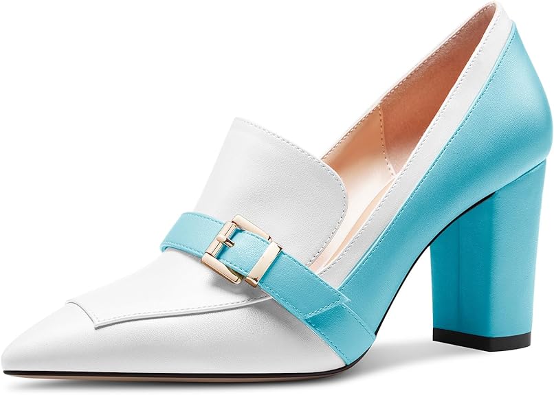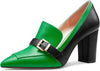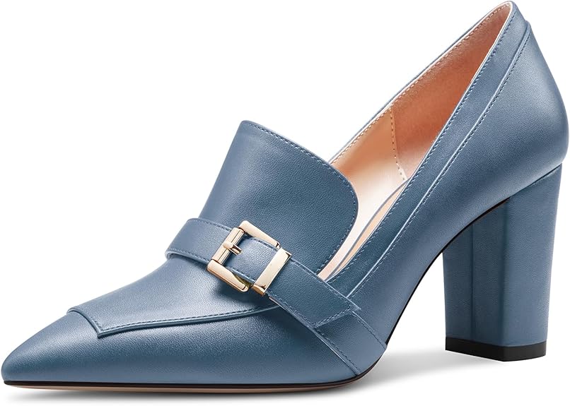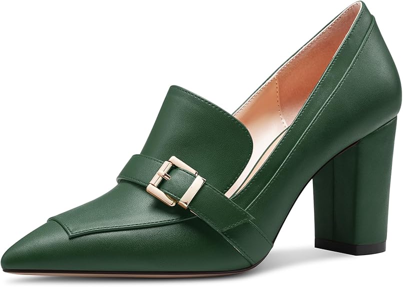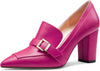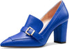 Womens Chunky Block Mid Heel Pointed Toe Pumps Slip-on Buckle Office Basic Classic Summer 3.2 Inches Shoes