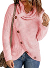 Women's Chunky Turtle Cowl Neck Knit Wrap Asymmetric Hem Sweater Coat with Button Details