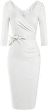 Women's Classic Retro V Neck Half Sleeve Sheath Formal Juniors Dress