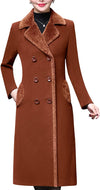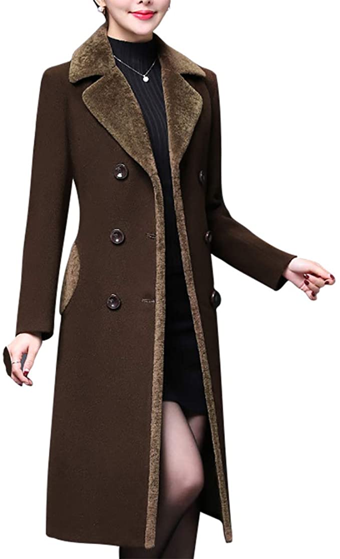 Women's Double-Breasted Notched Lapel Midi Wool Blend Pea Coat Jackets