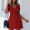 Women's Dress 2021 Spring/Summer Pure Color Single Row Buttons V-Neck Dress Women Slim High Waist Casual Dress Vestido