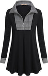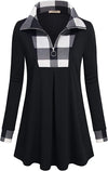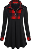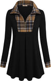 Women's Long Sleeve Quarter-Zip Lapel Tunic Top Plaid Pullover Sweatshirt