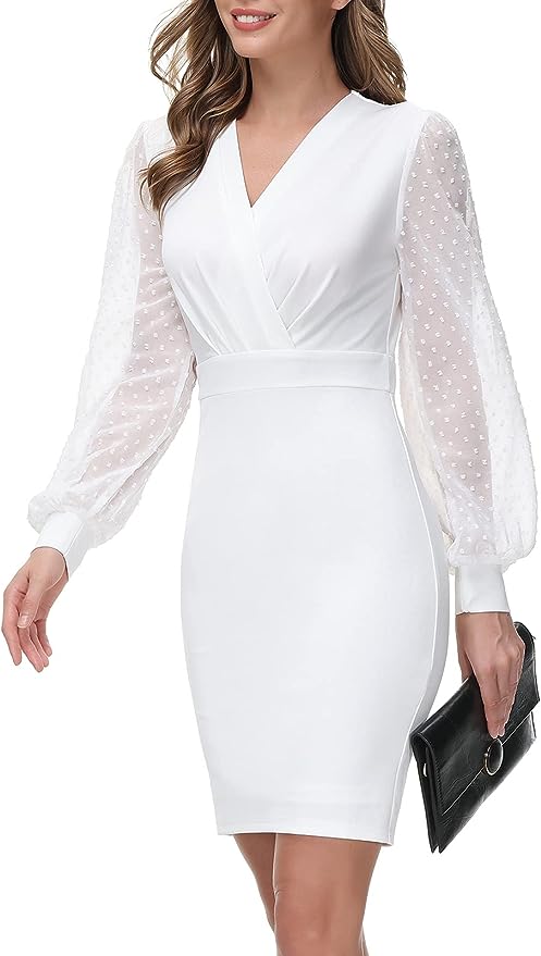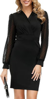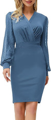 Women's Pencil Work Dresses Long Sleeve Wrap V Neck Bodycon Business Dress Elegant Cocktail Party Work