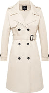 Women's Trench Coat Double-Breasted Classic Lapel Overcoat Belted Slim Outerwear Coat with Detachable Hood