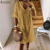 ZANZEA 2021 Summer Lace Dress Women's Sundress Fashion Flare Sleeve Short Vestido Female Bohemian V Neck Party Shirt Robe Femme